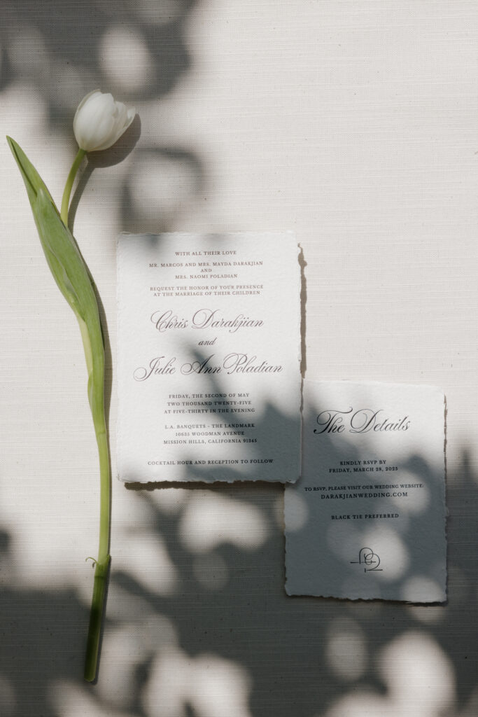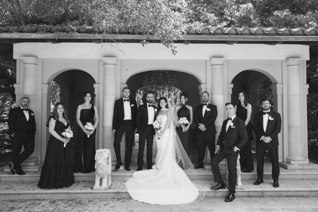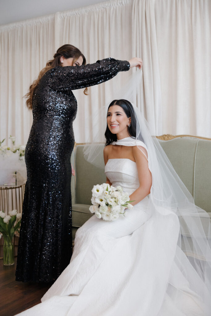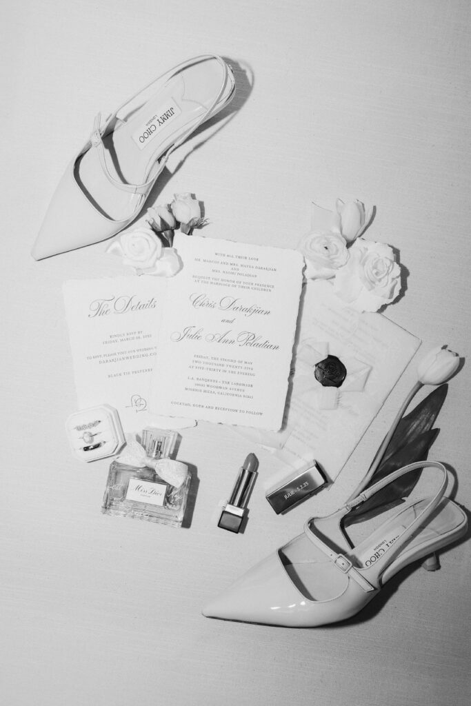 From the beginning, Julie knew she wanted a wedding that felt elevated and fashion-forward without losing the warmth of personal meaning. Her soft blue heels as a “something blue,” the sleek black-and-white palette, and a reception space styled to perfection all reflected her love for thoughtful, editorial design. But beyond the beauty, this day was full of deeply rooted cultural traditions that told the story of her family and heritage.