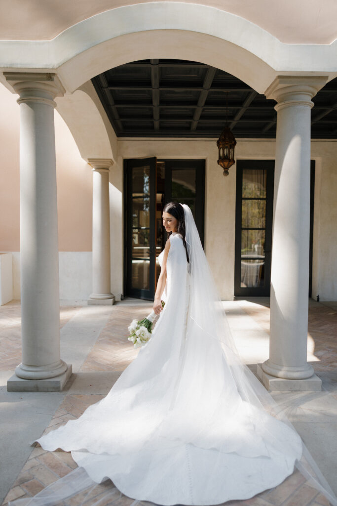 As part of Armenian custom, the morning began with joy and ceremony. Her brother helped her into her shoes, her mother circled the veil around her head in blessing, and family members played their roles with pride and playfulness – including a lighthearted “shoe stealing” moment between families. Music filled the driveway as the groom’s loved ones arrived with flowers, sweets, and gifts – setting the tone for a day that honored connection just as much as celebration.