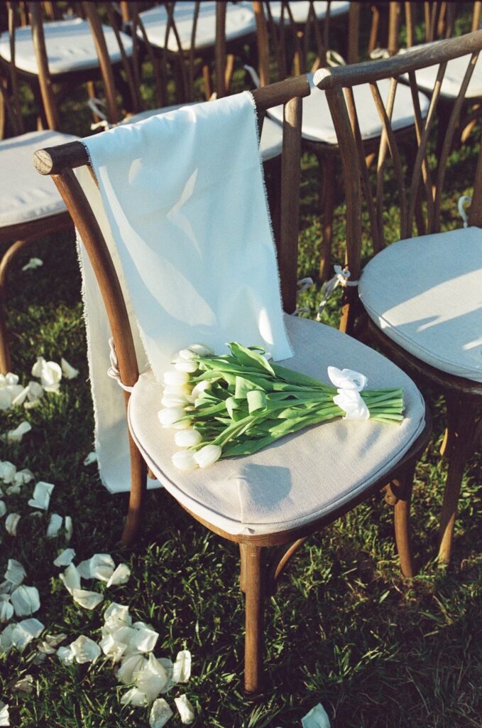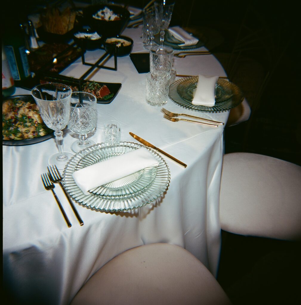 The ceremony and reception were a beautiful balance of modern design and personal touch. One of the most emotional moments of the evening came during a violin performance, played by Julie’s cousin in memory of her late father. A seat was saved for him in the front row – a simple but powerful reminder of presence and love.
